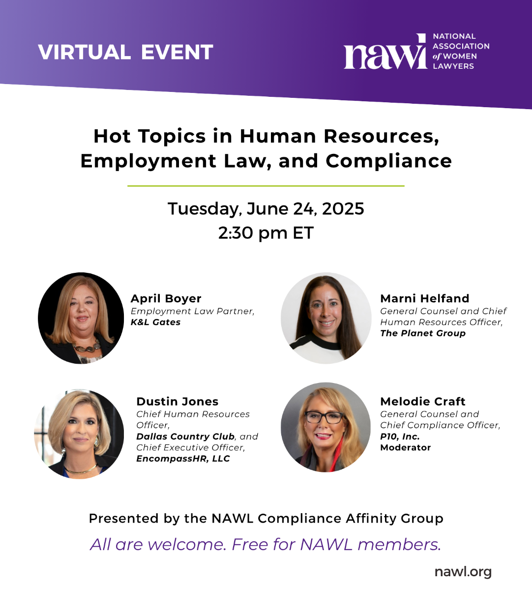 Please join us for a robust discussion on current topics in human resources, employment law, and compliance.